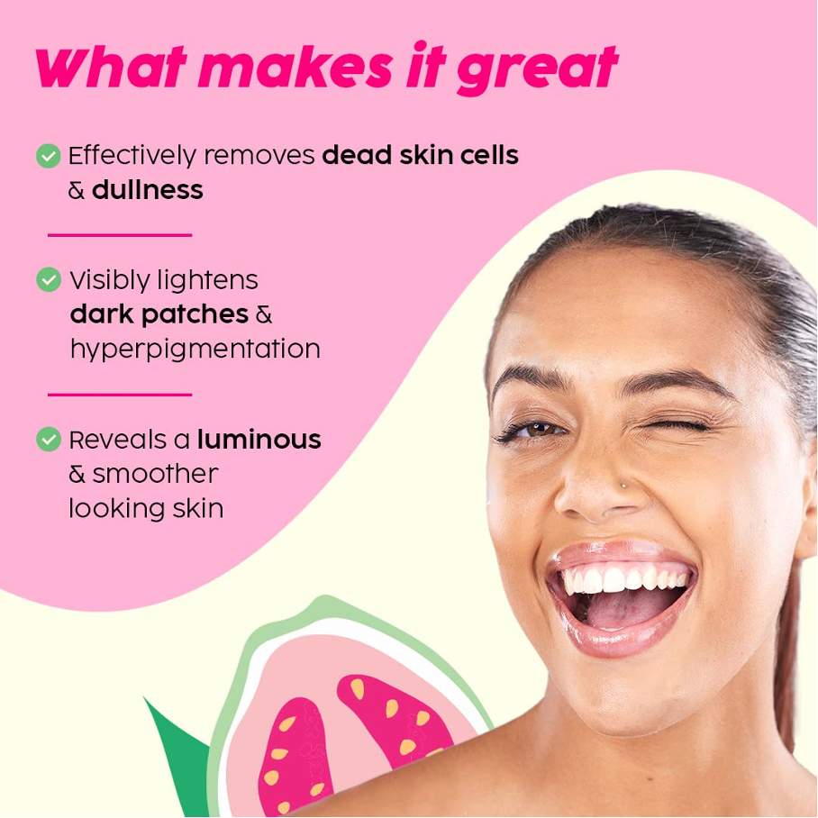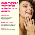 - Guava Glow-effect: De krachtige wondervrucht guave helpt de huid te ontgiften, vermindert dofheid en onthult een stralendere, egale teint met een zijdezachte textuur.