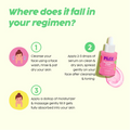 Routine: Gebruik het gedurende de eerste week in je avondroutine (P.M.). Daarna kun je het dagelijks gebruiken in zowel je ochtend- (A.M.) als avondroutine (P.M.), na het reinigen en tonen van de huid.