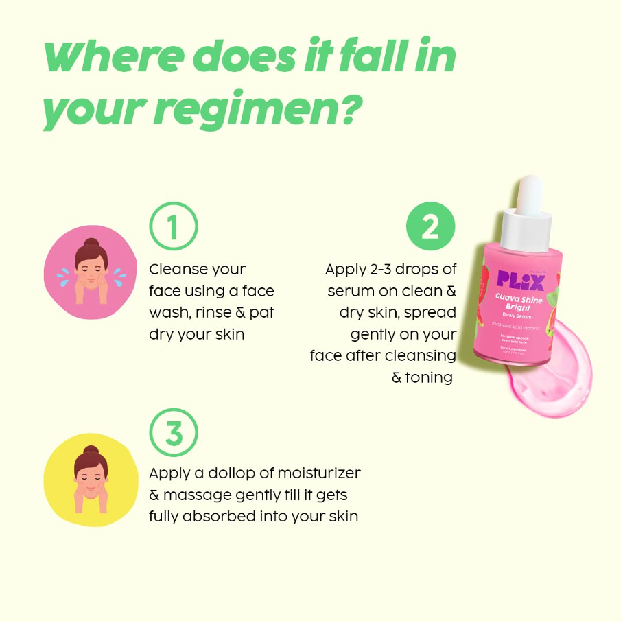 PLIX Guava Shine Bright Dewy Serum 3% Glycolic Acid, Vitamin C